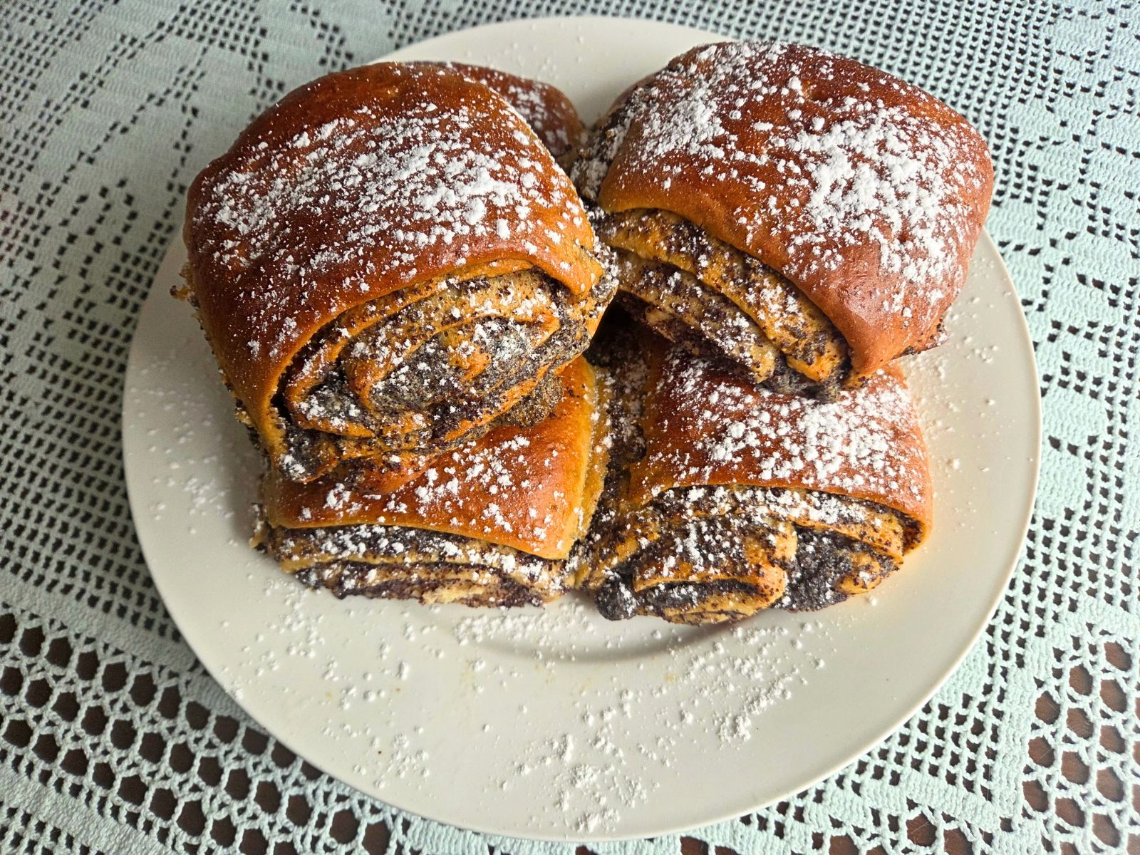 Ohlajene potičke iz pirine moke posujemo z netopnim sladkorjem v prahu in postrežemo s skodelico toplega mleka, čaja ali kave.